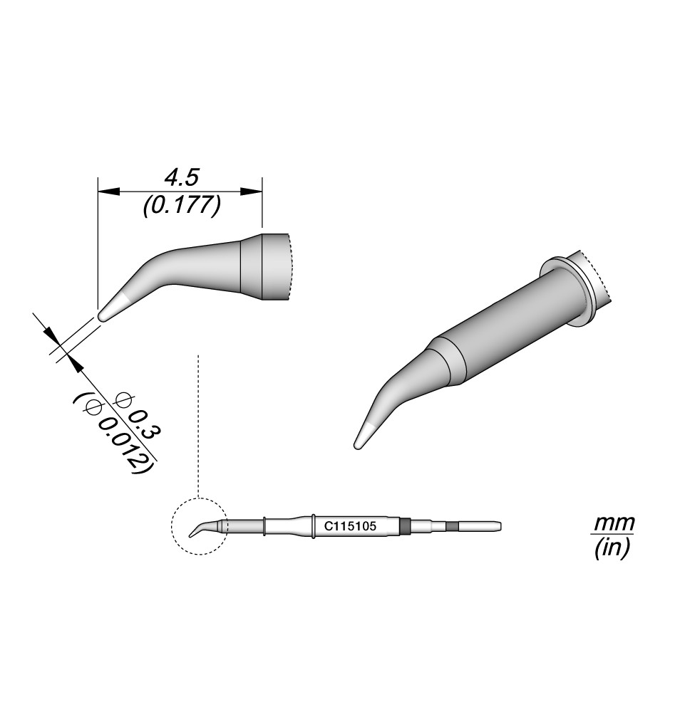 Les pannes C115 sont adaptées pour souder et réparer des composants de très petite taille avec une grande précision, même sous un microscope.