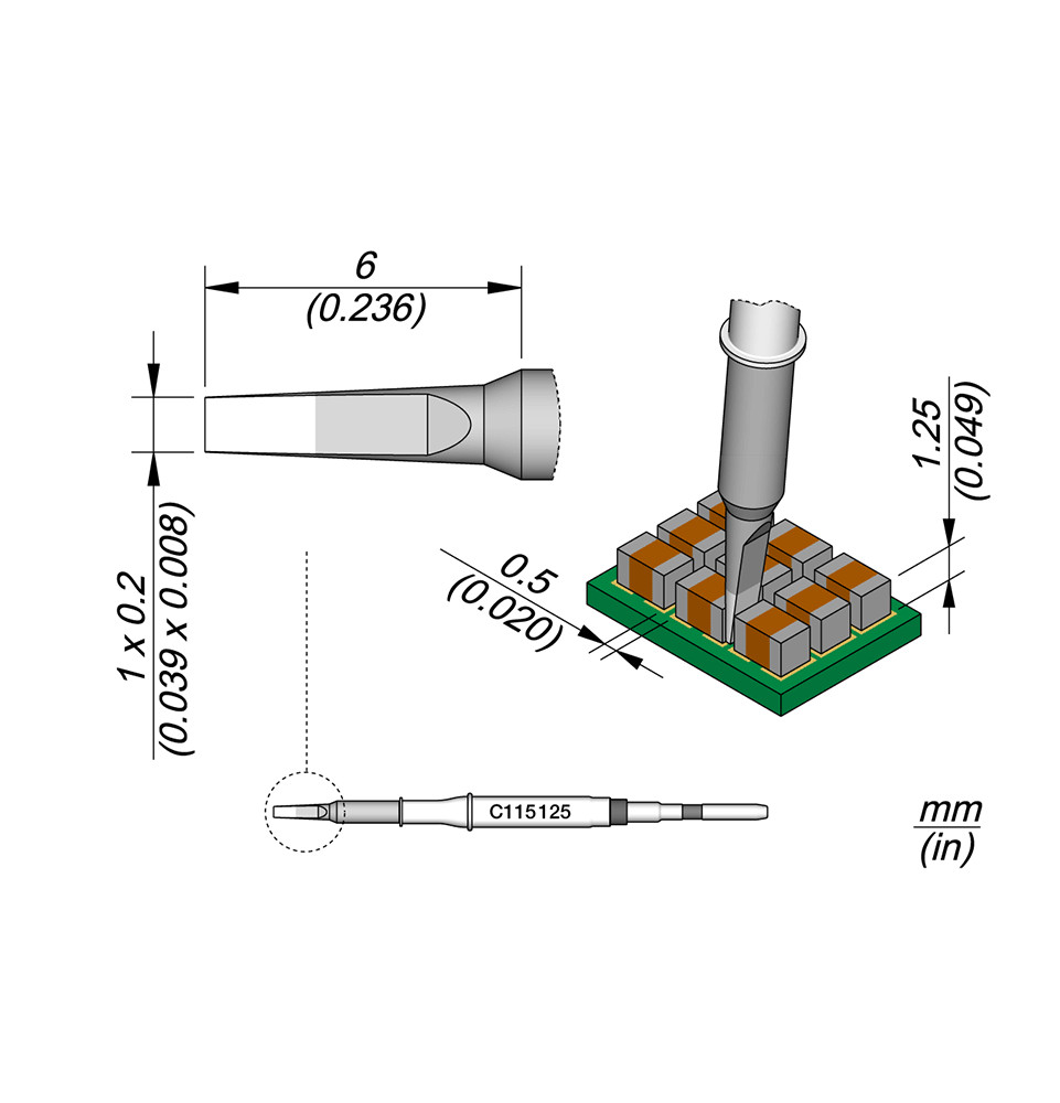Les pannes C115 sont adaptées pour souder et réparer des composants de très petite taille avec une grande précision, même sous un microscope.