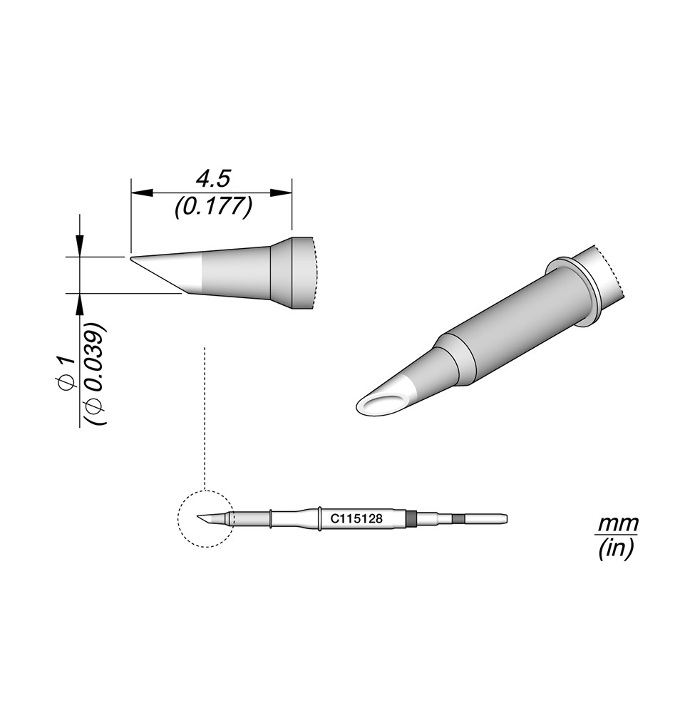 Les pannes C115 sont adaptées pour souder et réparer des composants de très petite taille avec une grande précision, même sous un microscope.