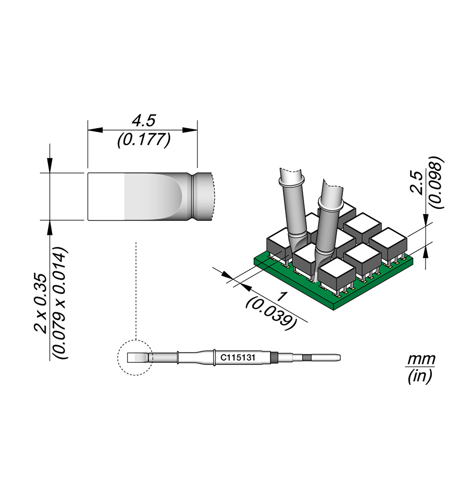 Les pannes C115 sont adaptées pour souder et réparer des composants de très petite taille avec une grande précision, même sous un microscope.