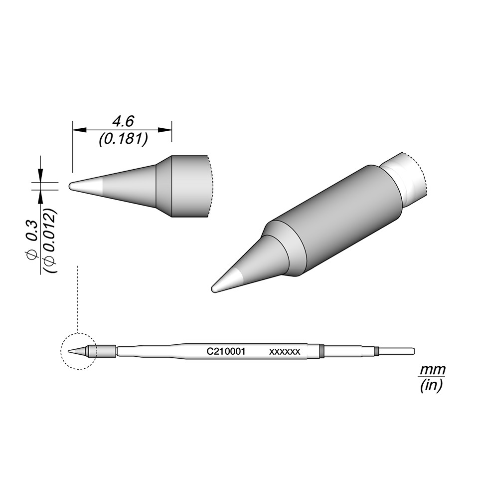 Les pannes C210 sont adaptées pour les travaux de soudage de précision avec des exigences de puissance moyenne. En raison de leur taille, ces pannes sont parfaites pour travailler avec des CMS, sous un microscope ou avec des composants conventionnels.