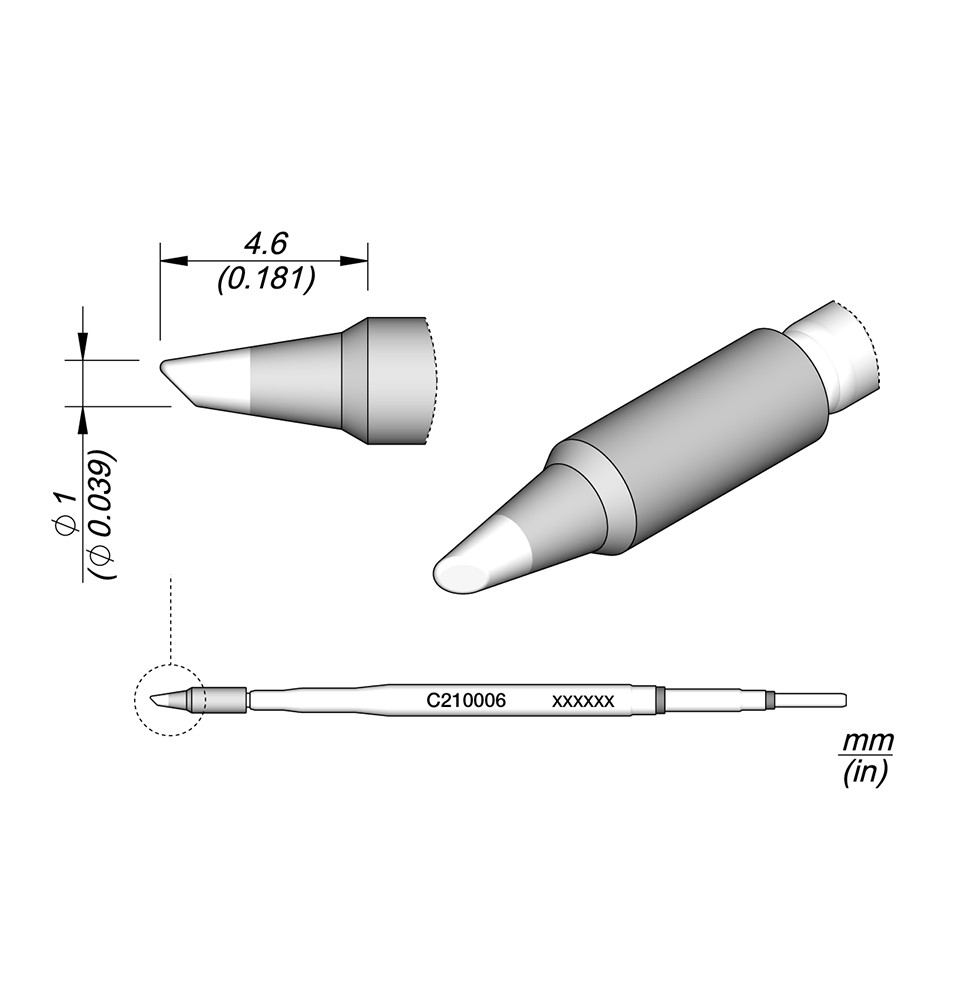 Les pannes C210 sont adaptées pour les travaux de soudage de précision avec des exigences de puissance moyenne. En raison de leur taille, ces pannes sont parfaites pour travailler avec des CMS, sous un microscope ou avec des composants conventionnels.