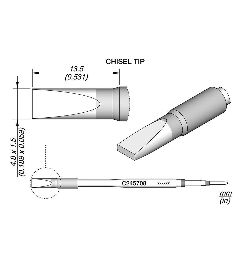 La gamme de pannes C245 est la plus large de JBC avec de nombreuses formes, tailles et modèles spéciaux.