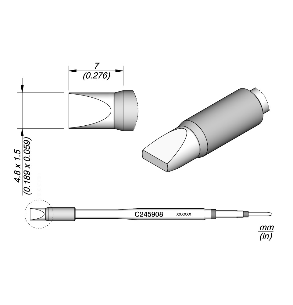 La gamme de pannes C245 est la plus large de JBC avec de nombreuses formes, tailles et modèles spéciaux.