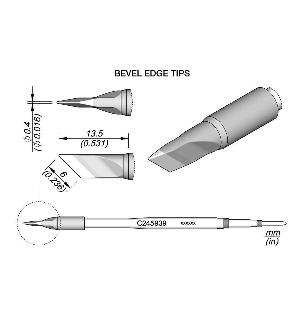 La gamme de pannes C245 est la plus large de JBC avec de nombreuses formes, tailles et modèles spéciaux.