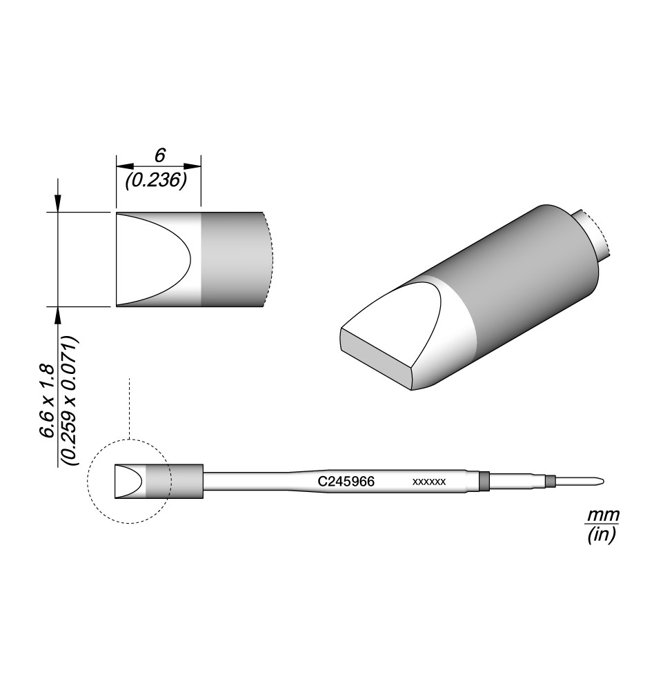 La gamme de pannes C245 est la plus large de JBC avec de nombreuses formes, tailles et modèles spéciaux.