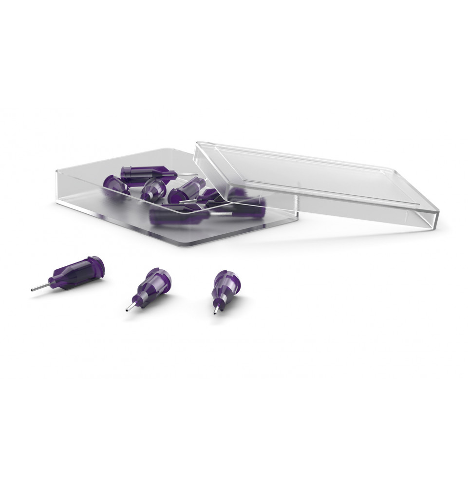 Livré en boîte de 10 aiguilles de distribution en acier inoxydable 21G.