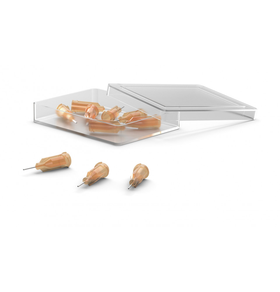 Livré en boîte de 10 aiguilles de distribution en acier inoxydable 23G.